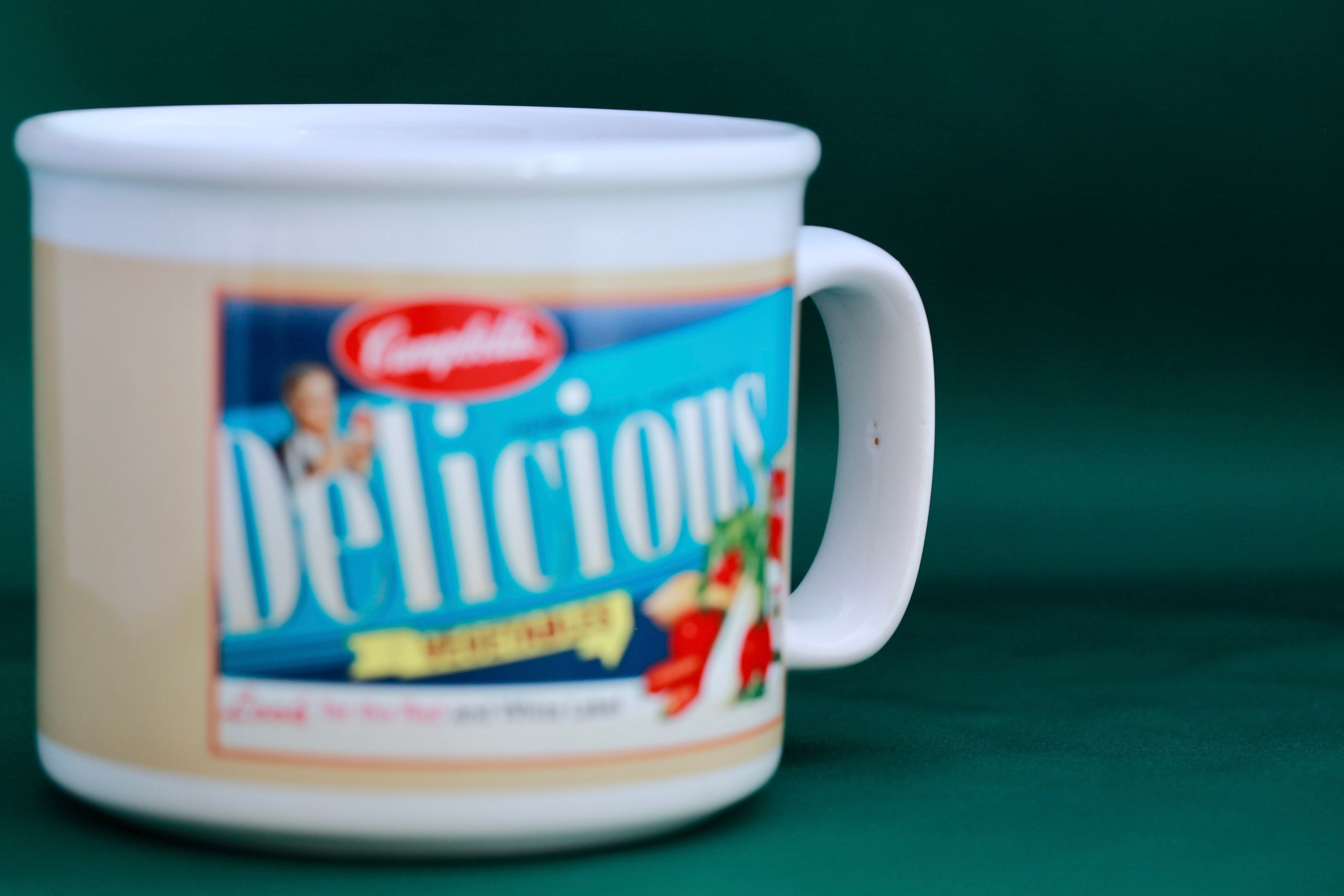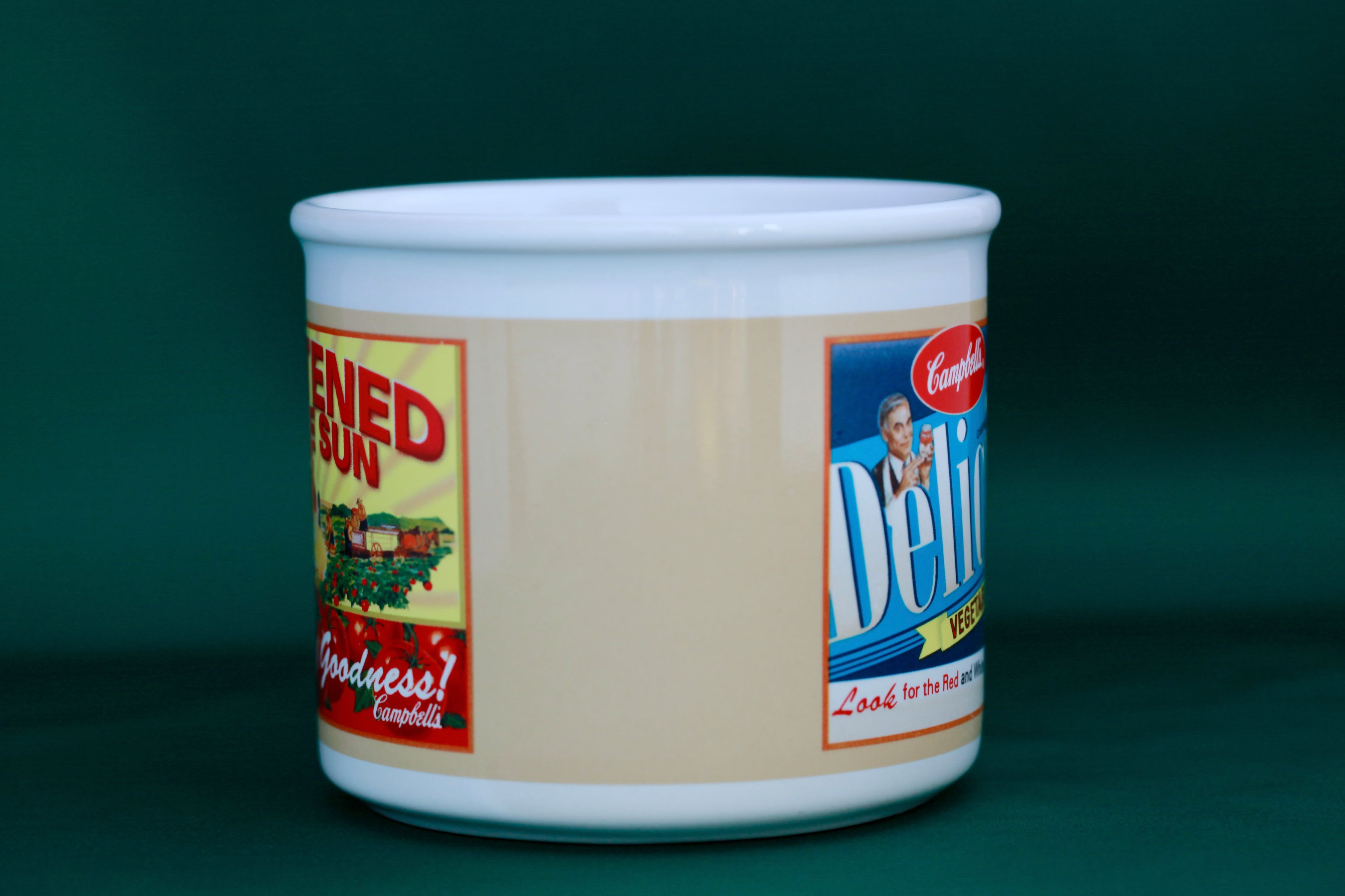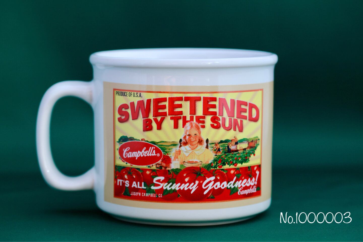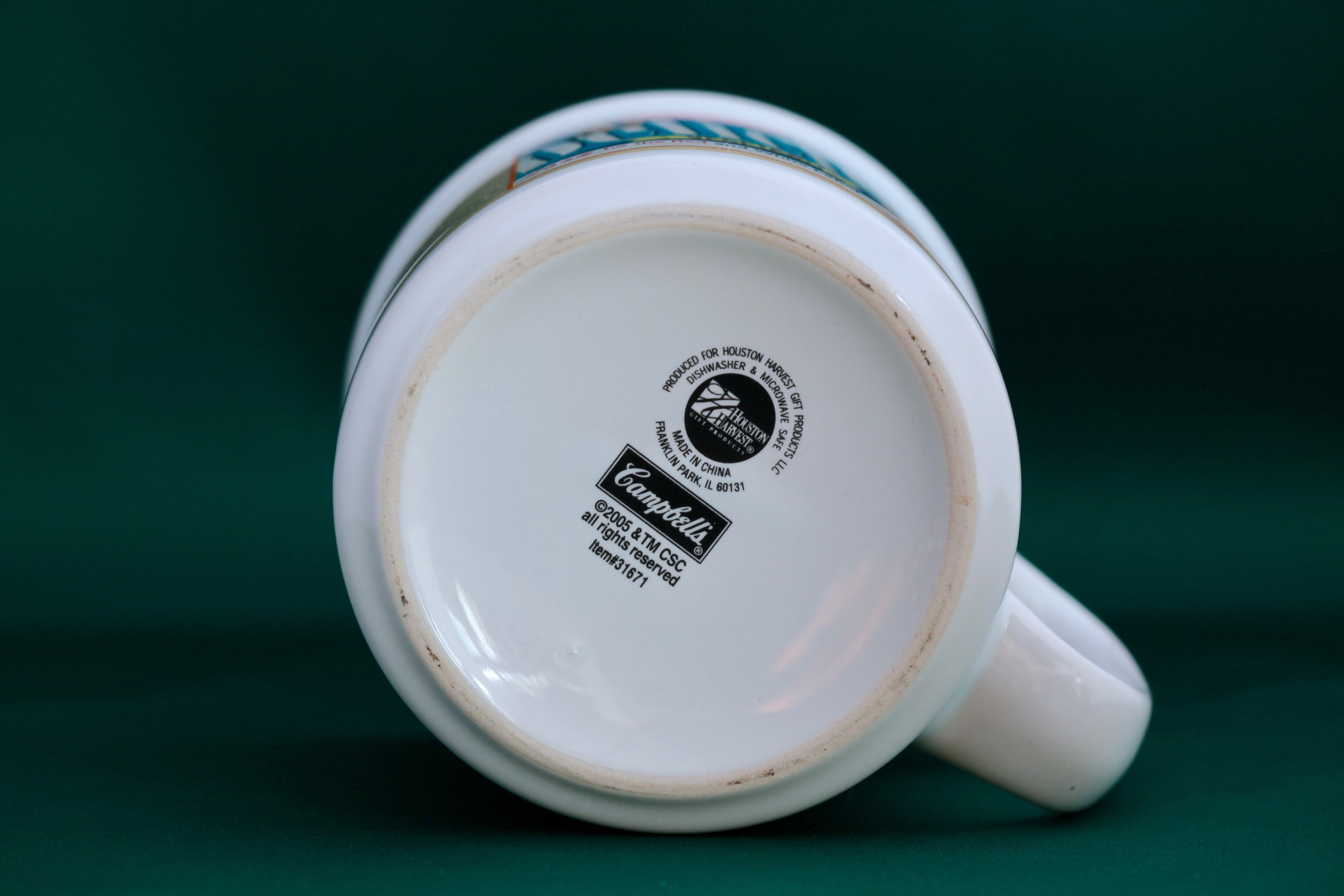 ヒューストンハービスト社が2005年に製造したキャンベルスープマグ太陽の恵み甘い野菜スープデザインのユーズド品です。